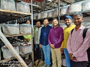 येथे मशरूम बनवण्याचा प्लांट आहे. येथे आमच्या टीमने भेट दिली. तेव्हा आमच्यासोबत प्रगतिशील शेतकरी बी. एन. फंड उपस्थित होते. त्यावेळी खरमाळे सरांनी प्लांट बद्दलची माहिती समजावून सांगितली. प्लांटवर मशरूम बनवण्यासोबतच त्यासाठी लागणारा कच्चा माल येथेच बनवला जातो. सर्व फिरून पाहिल्यानंतर मशरूम कसे बनवले जाते याबाबतची प्राथमिक माहिती समजली.
